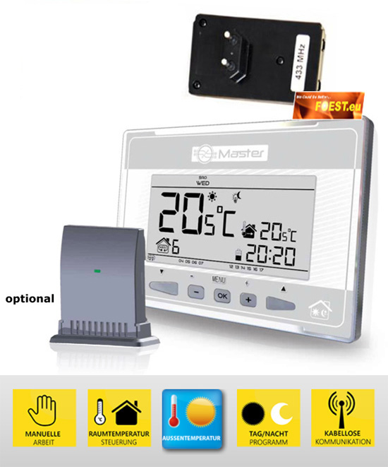 Programmierbarer Funk-Raumthermostat MASTER DE.355 (früher ST-290 V2 von TECH).