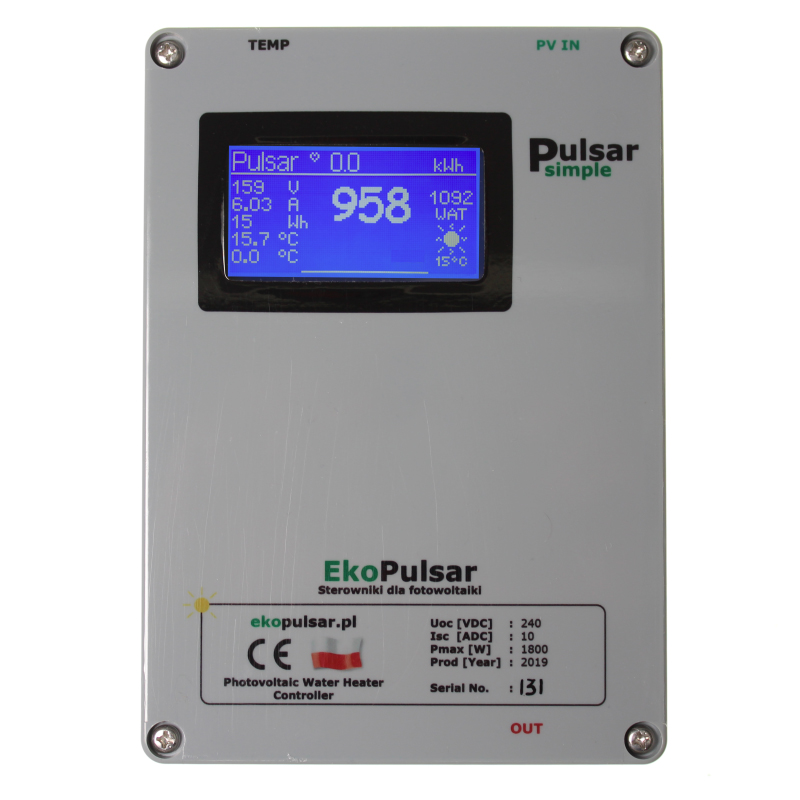 Die handelsüblichen Sonnenkollektoren erzeugen Strom, der in Anlagen, die nicht an das Stromnetz angeschlossen sind, nicht optimal genutzt werden kann. Das PulsarSimple-Gerät ist die optimale Antwort auf Kosten und Effizienz mehrerer polnischer Elektronik-Enthusiasten auf diese Herausforderung. Es bietet die Möglichkeit, Strom aus nichtlinearen Quellen elektrischer Energie (z. B. Solarmodule) zur Erwärmung von Brauchwarmwasser und für andere Zwecke zu verwenden.